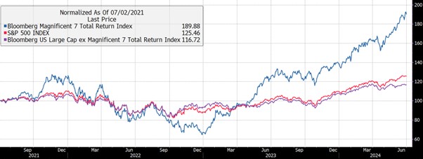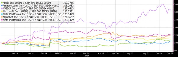 The phenomenon of the “Magnificent 7” stocks – Apple, Microsoft, Alphabet, Amazon, Meta Platforms, Tesla, and Nvidia – dominating the US stock market, has captured the attention of investors worldwide. So far this year Nvidia is up 159% and had you invested in everything bar the Magnificent 7 this year your return would have been just half the overall US equity market return (+8.8% Vs +16.9%).