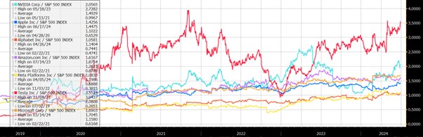 When you look at this year alone, and use the forward expectation of profits, you can see every single magnificent 7 stock has moved to a much higher premium compared with the S&P 500, especially the wonder stock Nvidia which now attracts an 83% higher rating relative to the end of last year.